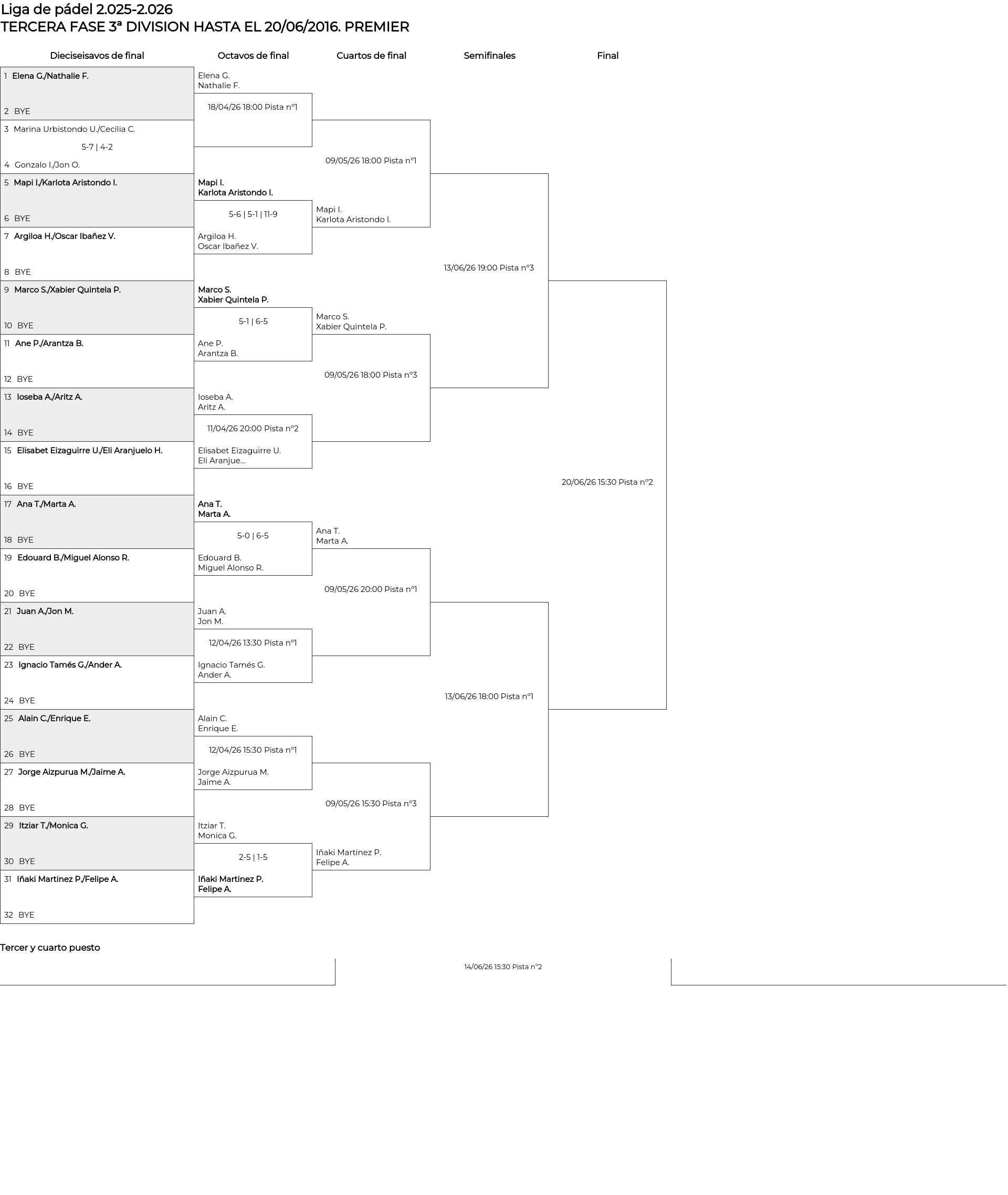 TERECERA FASE 1ª DIVISION HASTA EL 20/06/2026
