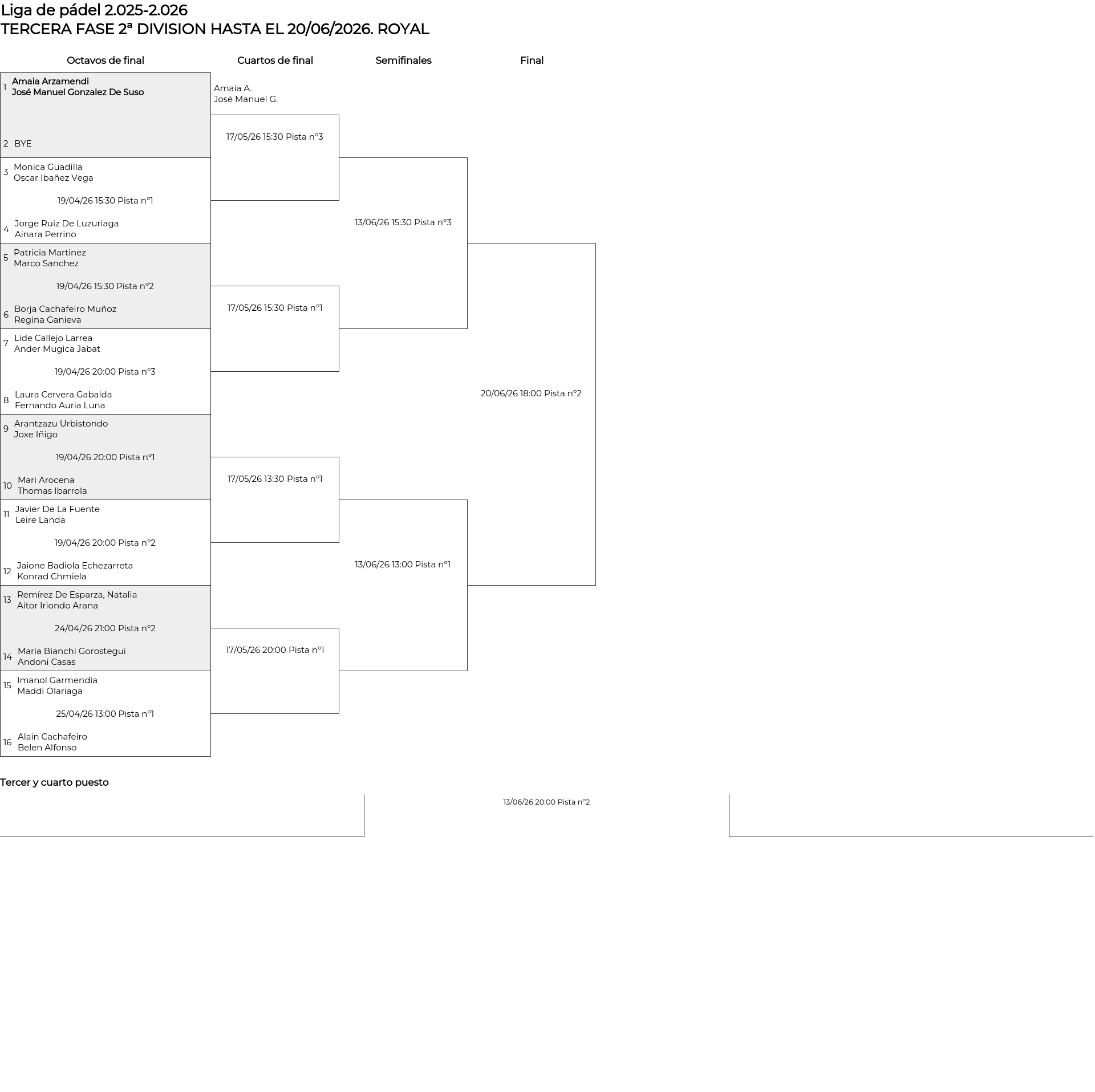 TERCERA FASE 2ª DIVISION HASTA EL 20/06/2026